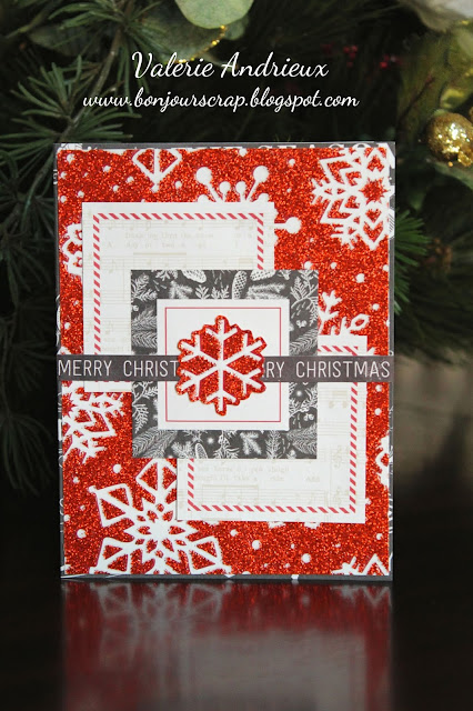 This first card is super simple, in unusual colors for Christmas but elegant. The paper is full of patterned papers, no plain color, and it's not always easy to create with this amount of patterns ! But you will see that I managed to mix them without difficult (or maybe just a little sometimes..).